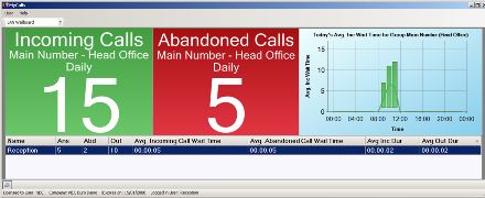 Real-time information such as total number of calls in queue, a caller’s waiting time, availability of customer service agents, abandoned and answered calls, will be displayed on the agent’s desktop PC. Call details, logs, and statistics are archived for further analysis via reports generated.